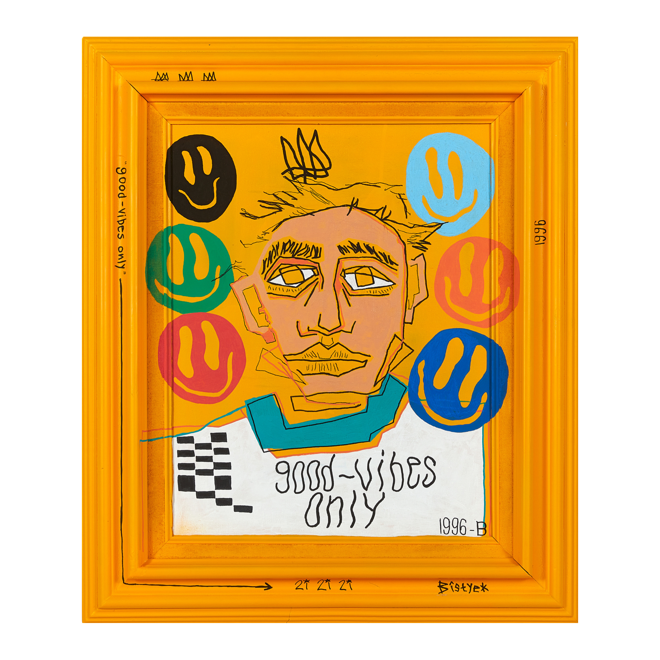“Good vibes only “ 55×64 cm 2021 Acrylic, spray paint on canvas $3000 CAD